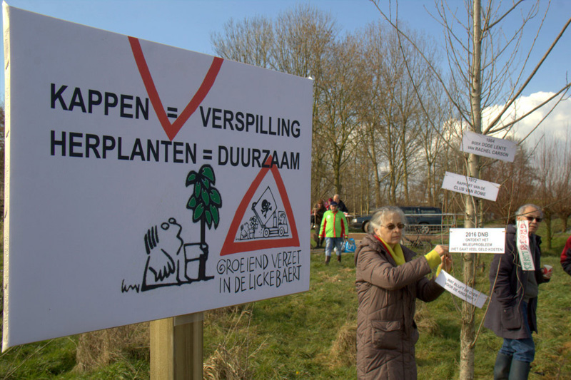 Op zaterdag 5 maart 2016 hebben, op initiatief van Groeiend Verzet, tientallen bomenplanters van het 2e Volksbos de bomen ‘behangen’ met labels. Op die labels zijn de gevoelens geuit die men heeft over het rooien van het bos. Dat gaat gebeuren vanwege een wettelijk verplicht archeologisch onderzoek voordat met de aanleg van het onzinnige tunnelplan met zesbaansnelweg mag beginnen.